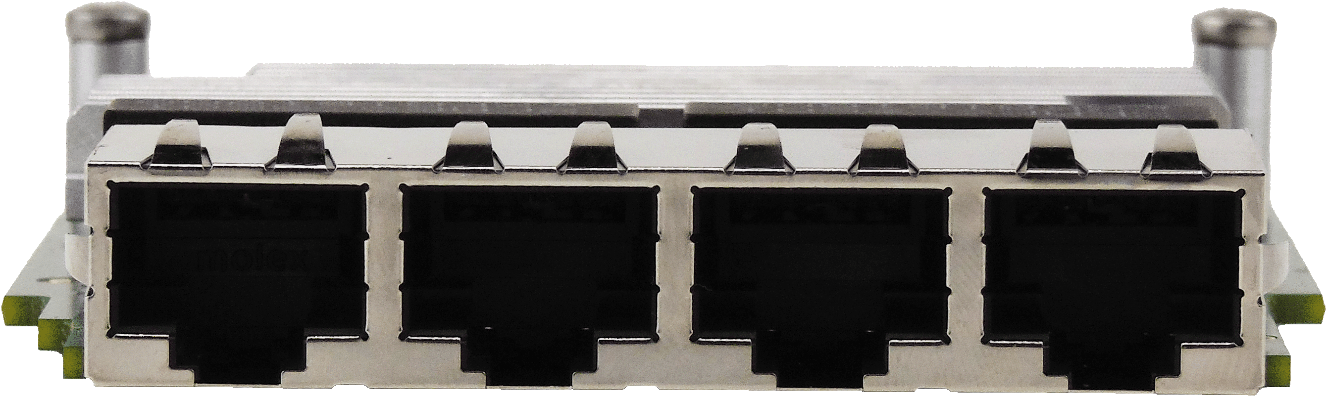 The FMC122 is an FPGA Mezzanine Card per VITA 57 specification. The FMC122 has a quad RJ-45 which can support 10/100/1000BASE-T over copper with twisted-pair cable. The module interfaces to the MAC with RGMII V2.0 HSTL 1.5V (FMC122 does not use SERDES to interface to the carrier).