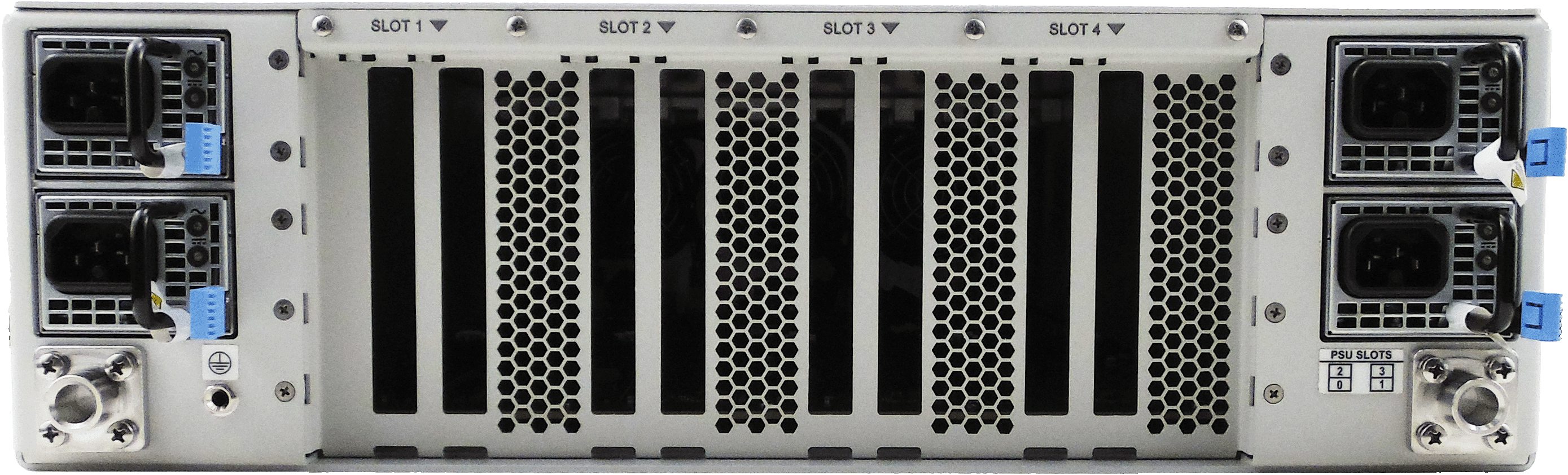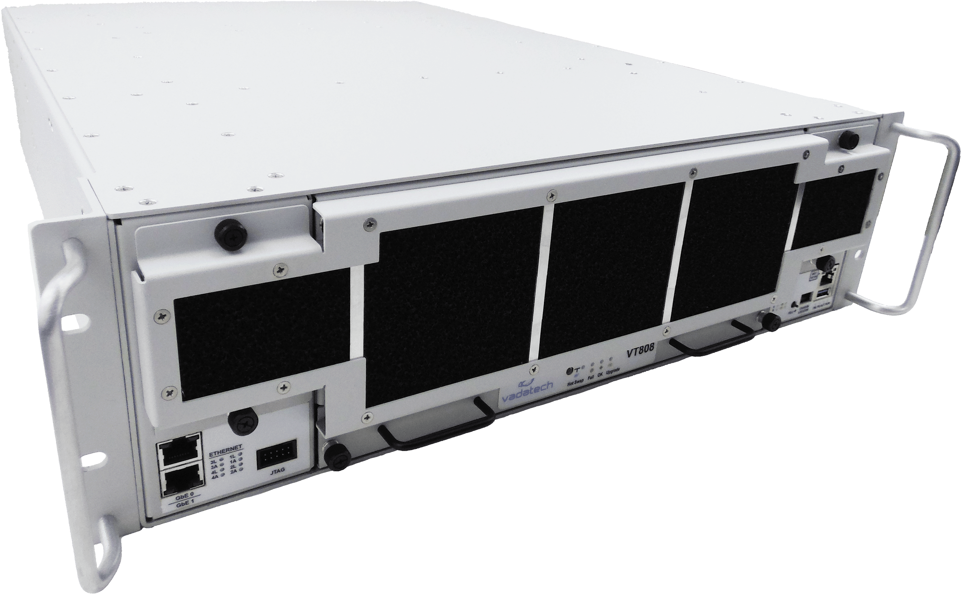 The VT808 is a four-slot chassis that accommodates four x16 PCIe style modules.
