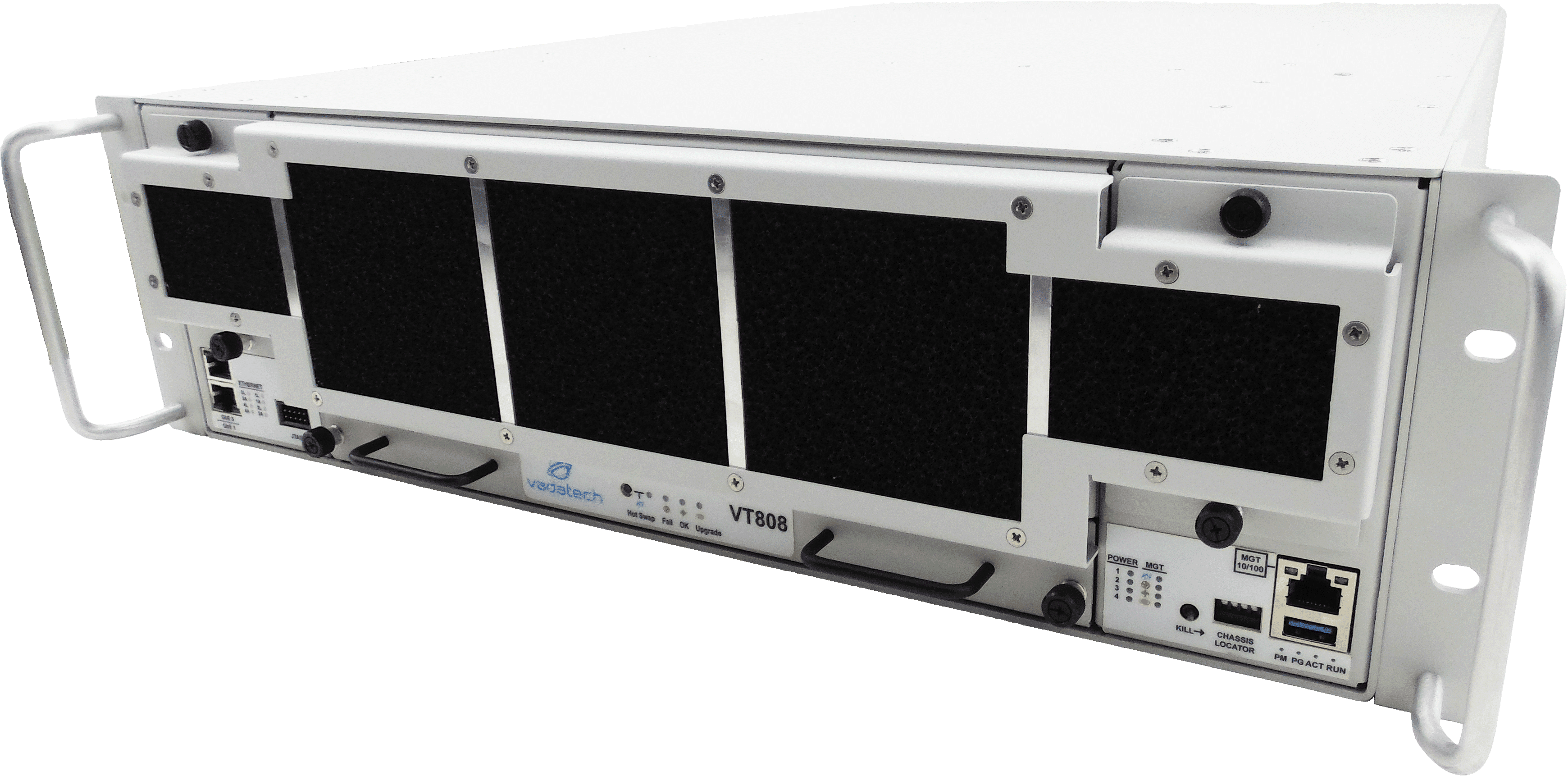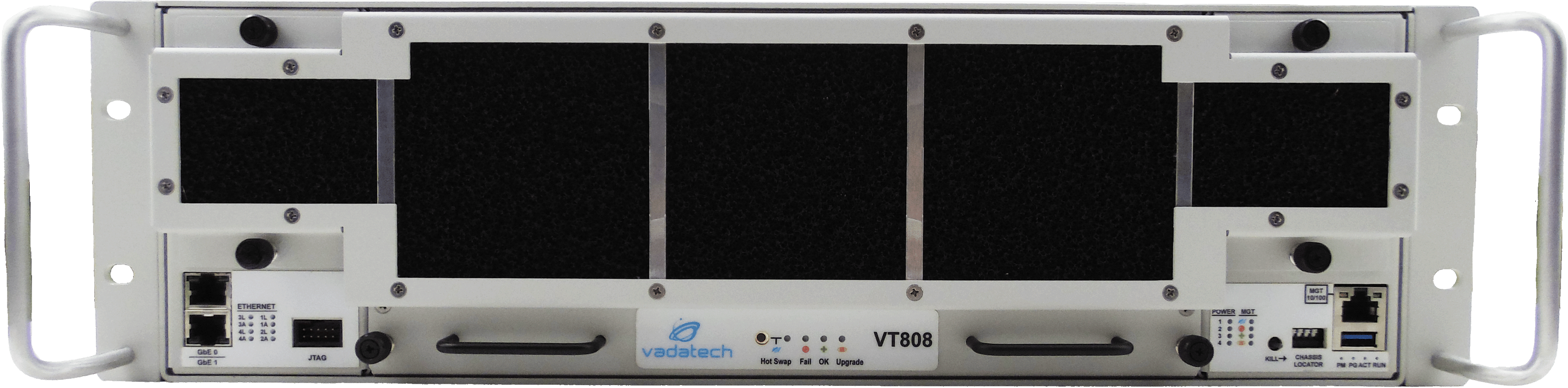 The VT808 has a health management controller on board which follows the IPMI specification. This allows dynamic cooling of the chassis as well as provide health management to the upper protocol.